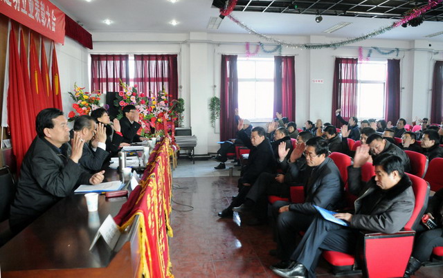 大会在庄严的国歌声中拉开了序幕,首先由星际·(中国)手机网页版副总经理要保林做《二零一零年度工作总结(草案)》,总会计师于广志做《二零一零年度财务工作报告》,监事会主席闫双彦做《二零一零年度财务审核报告》,副总经理谷进宝做《二零一零年工作安排意见的报告(草案)》,工会主席黄春玲做《二零一零年度职代会工作总结及二零一一年度工作安排报告(草案)》。随后全体与会代表对上述报告进行举手表决,均全票通过。会后,星际·(中国)手机网页版董事长兼党委书记张兰柱同志做重要讲话,总结了星际·(中国)手机网页版在二零一零年工作中的经验与不足,激励广大职工、股东代表在新的一年里为企业的快速发展继续作好排头兵、发挥表率作用,与广大员工一起为星际·(中国)手机网页版贡献力量。